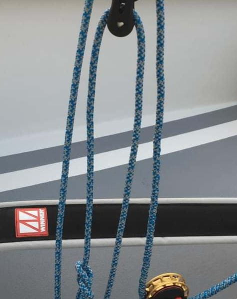 Albo 3:1 (standardowa konfiguracja) z liną o długości 7 m, albo o długości 8,5 m, jeśli używana jest konfiguracja z przełożeniem 4:1. The mainsheet is the Rooster Polilite to rewolucyjny, nieskręcany szot Rooster Polilite. Dzięki zewnętrznej osłonie nośnej i lekkiemu rdzeniowi wewnętrznemu ryzyko natknięcia się na splątany szot grota podczas kluczowego uderzenia jest znacznie zmniejszone. Aby mieć pewność, że otrzymasz odpowiednią długość liny, wybierz kolor i proporcje liny grota.