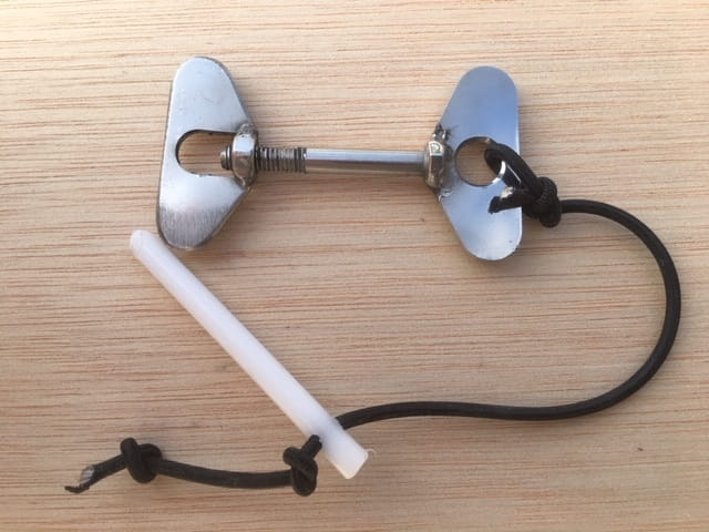 Śruba motylkowa + nakrętka motylkowa. Zawiera pin. Do głowicy steru.