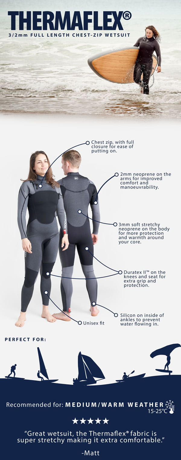 ThermaFlex 3/2mm Full Length Chest-Zip Wetsuit - Unisex